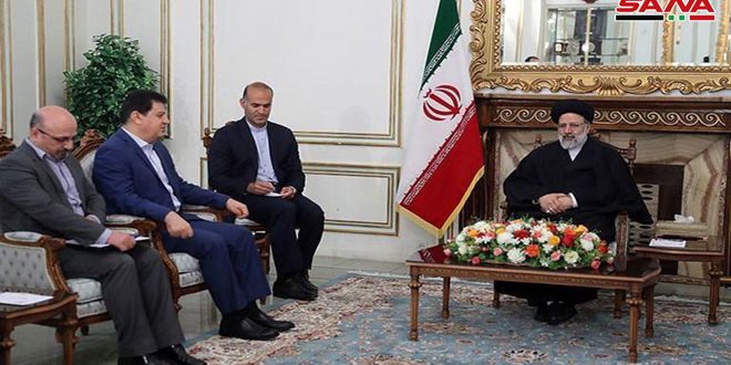 وأكد رئيسي استمرار إيران بدعم سورية في حربها ضد الإرهاب حتى دحره من كامل الأراضي السورية والحفاظ على سيادة سورية وتعزيز جبهة المقاومة في المنطقة.