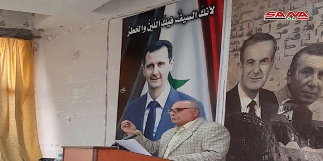 وختم الأمسية الشاعر حسن أحمد بلهجته الخطابية عبر كلمات احتضنت مشاعر حب واعتزاز بالجيش العربي السوري وفخر بتضحيات جنوده البواسل على امتداد سورية كما تغنى بفجر النصر عبر أبيات قصيدته “موطن الروح” مشبها سورية بنجمة الصبح التي تنشر الألق وتسكن الروح والفؤاد.