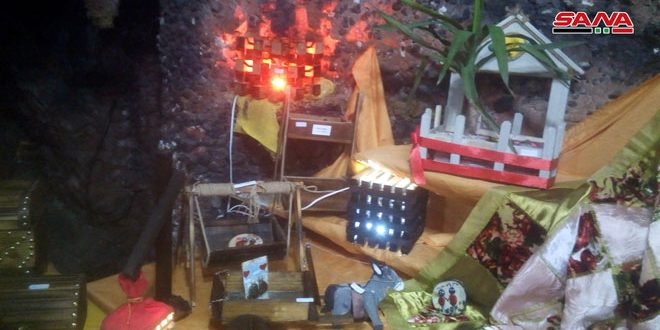 تحف فنية وأعمال يدوية مشغولة بإتقان وحرفية عالية صنعتها أنامل نساء بحس فني وأدوات بسيطة احتضنها معرض فني جماعي في مدينة السويداء.