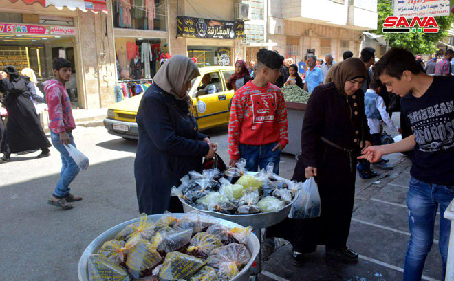 تشهد أسواق حمص حركة نشطة في شهر رمضان المبارك في ظل إقبال المواطنين على التزود بالمواد والحاجيات الخاصة بهذا الشهر.
