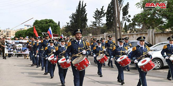 وقال ممثل مركز التنسيق الروسي في حميميم فارونين روسلان فيتروفتش “نقف اليوم في صف واحد لحماية مستقبل الانسانية وتقديم التضحيات لحماية شعوبنا” مؤكدا الاستمرار بتقديم الدعم لسورية في مواجهة قوى الشر والارهاب التي تستهدفها.