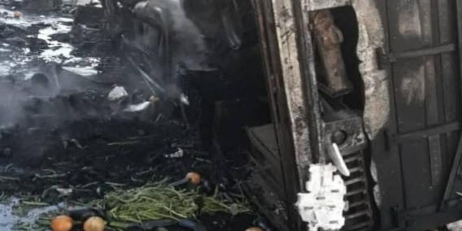 وذكر مصدر في قيادة شرطة ريف دمشق لمراسلة سانا أن سيارتين محملتين بالخضار كانتا في طريقهما باتجاه دمشق وعند وصولهما مفرق معلولا ونتيجة السرعة الزائدة اصطدمتا ببعضهما ما أدى إلى نشوب النيران بهما.