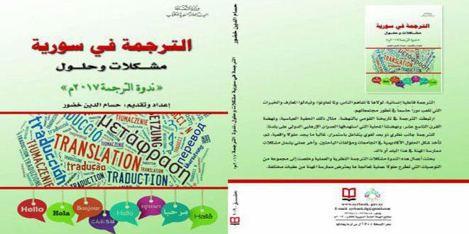 يعرض كتاب “الترجمة في سورية مشكلات وحلول” الذي ارتكز على أعمال ندوة الترجمة الوطنية لعام 2017 لمشكلات الترجمة النظرية والعملية مع تقديم مجموعة توصيات تطرح حلولا عملية لمعالجة ما يعترض ممارسة المهنة من عقبات مختلفة.