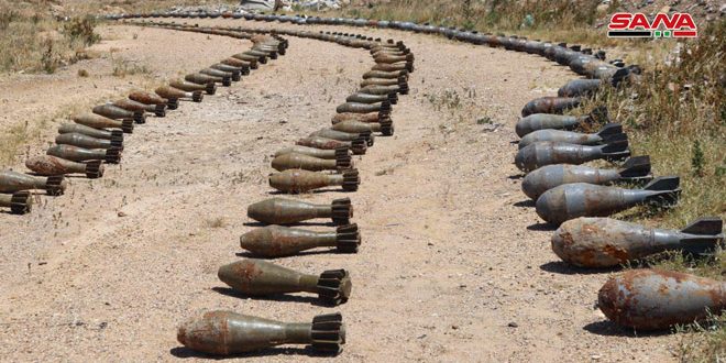 قذائف متنوعة وأسلحة من مخلفات إرهابيي “داعش” في منطقة الميادين