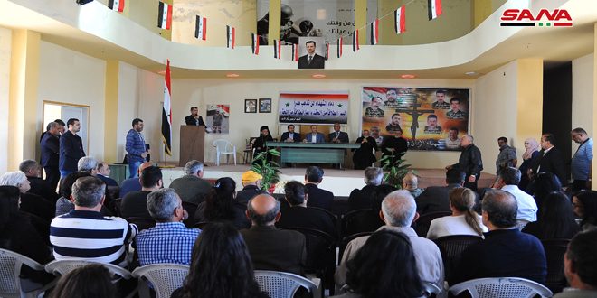 محافظ ريف دمشق المهندس علاء ابراهيم أكد في كلمته المكانة العظيمة للشهداء الذين ضحوا بدمائهم في سبيل الدفاع عن الوطن وقال: “لن نوفي الشهداء حقهم مهما فعلنا لأنهم ضحوا بأغلى ما عندهم في سبيل عزة وكرامة الوطن”.