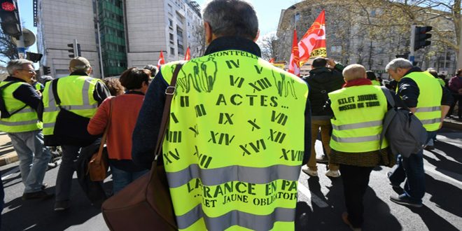 خرج محتجو السترات الصفراء في شوارع باريس وليون ومدن فرنسية أخرى مجدداً اليوم للسبت السادس والعشرين على التوالي رفضاً وتنديداً بسياسات الرئيس امانويل ماكرون وإجراءاته لاحتواء الأزمة داعين إلى التصويت ضده في البرلمان الأوروبي.