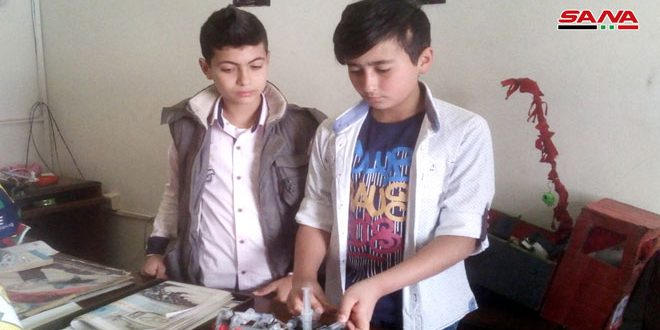 اما الشاب قصي رضوان فصمم جهاز إنذار لحماية المنازل من السرقة يوضع بالقرب من الأبواب إضافة لمجسم رافعة مواد تشتغل بضغط السوائل مقتربا في ابتكاره الثاني مع ما عمل عليه أيضا الشاب سومر الخطيب.