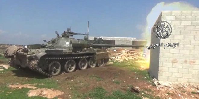 وذكر مراسل سانا في حماة أن وحدات من الجيش نفذت ضربات مدفعية وصاروخية طالت تجمعات وتحصينات إرهابيي “جبهة النصرة” في قريتي جسر بيت الراس والحويز بريف حماة الشمالي الغربي ما أدى إلى تدمير أوكار لهم وإيقاع قتلى ومصابين في صفوفهم.