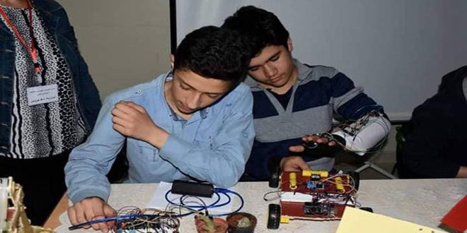 محمد خير الزهراوي وبشر أتاسي وعبد الله نقشو من ثانوية الباسل يشاركون للسنة الثانية في المعرض من خلال برنامج أسموه “لعبة