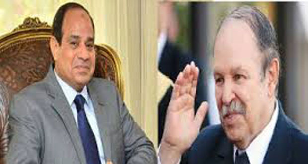 بحث الرئيس الجزائري عبد العزيز بوتفليقة مع الرئيس المصري عبد الفتاح السيسي في الجزائر اليوم تطورات الأوضاع في المنطقة العربية وخاصة سورية وليبيا والعراق.