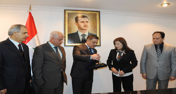 وقدم وزير التعليم العالي ورئيس جامعة دمشق درعا تكريميا للدكتورة دانون.