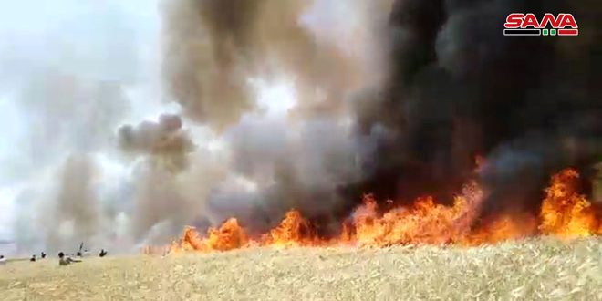 وبين أنه خلال عملية إخماد الحريق تعرض صهريج إطفاء لمديرية زراعة حماة لانفجار لغم أدى إلى عطبه كما احترق صهريج آخر وسيارة “بيك أب” نتيجة تطويقهما بالنيران.