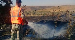 وأكد أن فرق الإطفاء جاهزة على مدار الساعة لإخماد الحرائق التي تزداد خلال هذه الفترة بالتزامن مع قرب موعد حصاد المحاصيل ووجود الأعشاب اليابسة بشكل كثيف في محيط الأراضي وعلى الطرقات العامة وشدة الرياح التي تسهم بسرعة انتشار الحريق.