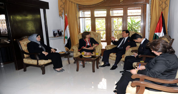 أكدت رئيسة الاتحاد العام النسائي الدكتورة ماجدة قطيط خلال لقائها اليوم زانغ ميونغ هو سفير جمهورية كوريا الديمقراطية الشعبية بدمشق الدور الذي تمارسه المرأة في تعزيز صمود المجتمع السوري ومواجهة المؤامرة التي يتعرض لها بأبعادها الاجتماعية والاقتصادية والعسكرية وتكريس المبادئ القيمية المجتمعية.