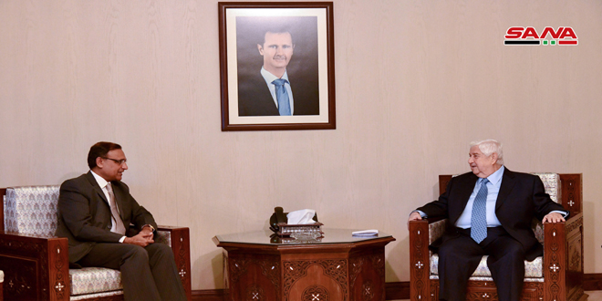 استقبل وليد المعلم نائب رئيس مجلس الوزراء وزير الخارجية والمغتربين قبل ظهر اليوم تي اس تيرومورتي نائب وزير الخارجية الهندي والوفد المرافق له.
