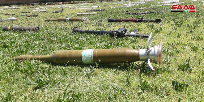 خلال استكمال عمليات تمشيط القرى والبلدات المحررة من الإرهاب عثرت الجهات المختصة على أسلحة وذخائر بعضها امريكي وتركي الصنع وقطع أثرية من مخلفات الإرهابيين في أرياف دمشق ودرعا وحماة.