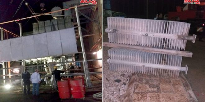 وفي وقت سابق اليوم اعتدت التنظيمات الإرهابية بعدد من القنابل أسقطتها من طائرة مسيرة على محطة الزارة لتوليد الكهرباء في ريف حماة الجنوبي ما تسبب بوقوع دمار كبير في المحطة.