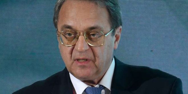 بحث المبعوث الخاص للرئيس الروسي إلى الشرق الأوسط ودول أفريقيا نائب وزير الخارجية ميخائيل بوغدانوف اليوم مع وفد عن أبرشية نيويورك وسائر أمريكا الشمالية ببطريركية أنطاكية للروم الأرثوذكس برئاسة المتروبوليت جوزيف زحلاوي الجهود التي تبذلها روسيا لحل الأزمة في سورية وإعادة الاستقرار إلى المنطقة.
