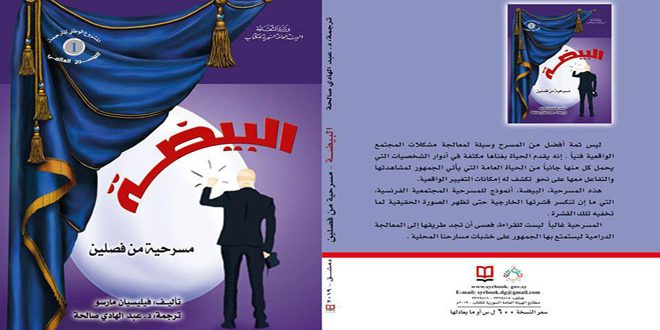 المسرحية التي صدرت مؤخرا مترجمة ونقلها للعربية الدكتور عبد الهادي صالحة أخذت عنوانها من غطاء البيضة المغلق كالمجتمعات المغلقة على العادات والتقاليد بهدف نشر الوعي وثقافة التجديد أما ترجمتها فجاءت بلغة بسيطة سهلة محافظة على روح العمل والرسالة التي يريد المؤلف إيصالها سواء من خلال قراءة النص أو مشاهدته مشخصا على الخشبة.