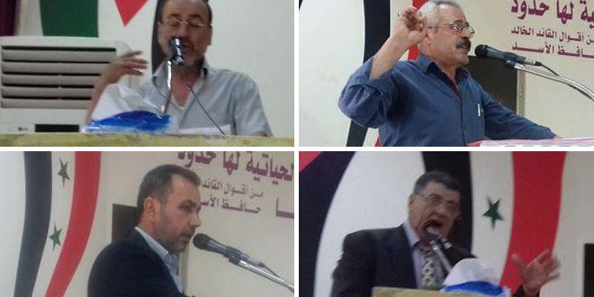 تضمن اللقاء الأدبي الذي أقيم في المركز الثقافي العربي بمدينة تلكلخ قصائد شعرية وطنية تحتفي بالشهيد وتمجد الشهادة وتجسد مفهومها بنظر الشعراء وفق مضامين مختلفة غلب عليها شعر الشطرين.