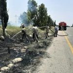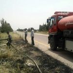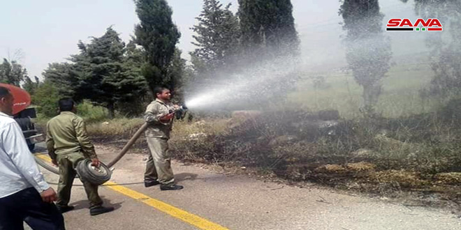 أخمد عناصر دائرة الحراج والدفاع المدني في القنيطرة حريقا نشب على طريق مدينة القنيطرة بالقرب من دوار العلم.