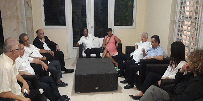 وخلال لقاء الدكتور إدريس ميا سفير سورية لدى كوبا في دار السكن السوري بالعاصمة هافانا بعدد من سفراء الدول الصديقة وحضور مدير إدارة أفريقيا والشرق الأوسط في وزارة الخارجية الكوبية نوهت رودريغيز بالعلاقات التاريخية التي تربط بين البلدين الصديقين مؤكدة أن صوت كوبا في المحافل الدولية سيبقى دائما إلى جانب سورية.