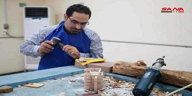 النحات أبو حمدان أوضح لمراسلة سانا أنه بدأ موهبته يافعا بالنحت على الخشب بعد أن تعلم على أيدي فنانين محترفين ومن ثم اشتغل على خامات عدة منها الحجر والطين والرخام والريزين والخردة والحجر الصناعي مشيرا إلى أنه تأثر بالفن المعماري الشرقي القديم في بناء مجسمات تاريخية وقصور وقلاع تحكي حياة الأجداد مع تركيزه على الإنسان كمكون أساسي لأعماله.