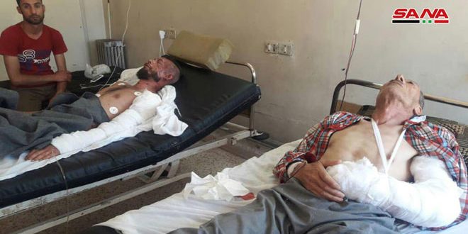 وأشار المراسل إلى أن سقوط صواريخ أطلقتها المجموعات الإرهابية على مدينتي سلحب والسقيلبية بريف حماة الشمالي تسبب بإصابة رجل وامرأة في سلحب وإحداث دمار بممتلكات الأهالي والأراضي الزراعية في المدينتين.