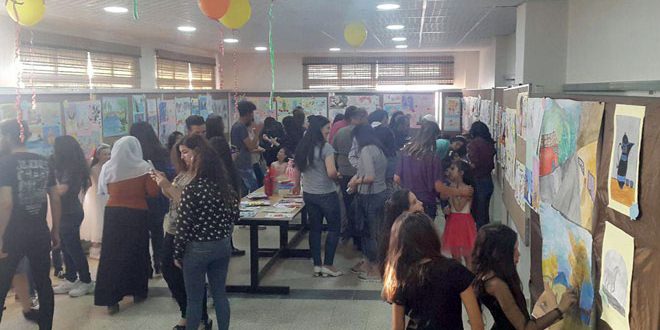 قدم 25 طفلا اليوم نحو 150 لوحة فنية وعددا من الأعمال اليدوية ضمن معرض فني استضافه المركز الثقافي العربي بمدينة شهبا في السويداء.