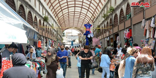 يشهد السوق المسقوف بحمص هذه الأيام بعد إعادة افتتاح الكثير من المحال التجارية وترميمها حركة نشطة من المواطنين الذين يترددون على السوق قاصدين المحال التجارية استعدادا لعيد الفطر السعيد حيث يبدأ الزحام فيه تدريجيا منذ ساعات الصباح وحتى ساعات متأخرة من الليل.