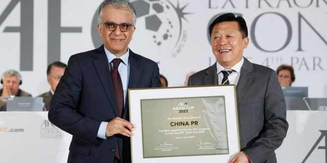 نالت الصين حق تنظيم نهائيات كأس آسيا 2023 لكرة القدم بالتزكية خلال اجتماع الجمعية العمومية غير العادية للاتحاد الآسيوي في باريس.