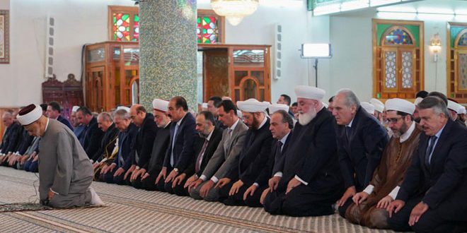 أدى السيد الرئيس بشار الأسد صباح اليوم صلاة عيد الفطر السعيد في رحاب جامع السيد الرئيس حافظ الأسد بدمشق.