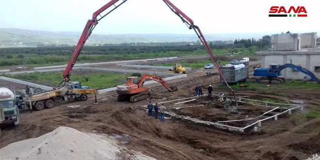وقال حلاس: تم إنجاز أعمال بقيمة 200 مليون ليرة في مشروع المدينة الحرفية بالحواش منها كبل التوتر المتوسط وإنهاء صب قواعد وأعمدة الخزان العالي مرحلة أولى وإنهاء أعمال مركز التحويل الأول ويتم العمل حالياً بتجهيز مركز التحويل الثاني والقيمة العقدية 108ر1 مليار ليرة كما تم تنفيذ نسبة 35 بالمئة من شبكة المياه و50 بالمئة من الطرقات التخديمية فيما بلغت النسبة العامة لتنفيذ المشروع 40 بالمئة.