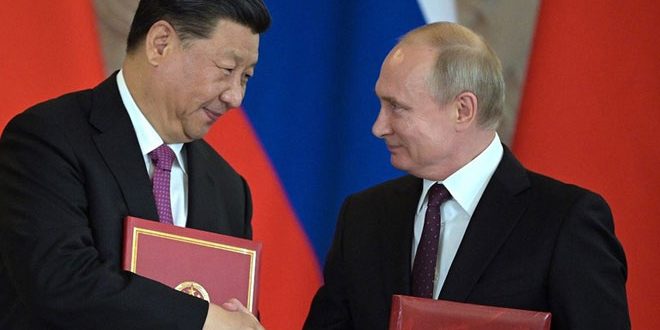 وأضاف بوتين إن زيارة الرئيس الصيني إلى روسيا تتزامن مع الذكرى الـ 70 لإقامة الاتصالات الدبلوماسية بين بلدينا ويسرني الإشارة إلى أن العلاقات الروسية الصينية بلغت مستوى غير مسبوق وهذه في الحقيقة شراكة شاملة وتعاون استراتيجي.