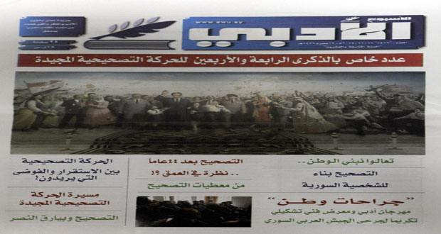 صدر العدد الجديد من جريدة الاسبوع الادبي وخاص بالذكرى الرابعة والأربعين للحركة التصحيحية متضمنا مجموعة من المقالات والنصوص والقصائد التي كتبت بهذه المناسبة المجيدة اضافة الى مقالات وروءى وافكار تحمل في معانيها حب الشام والمعاني الانسانية والاجتماعية السامية.