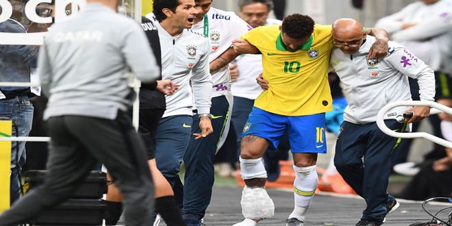 وقال التلفزيون البرازيلي إن نيمار نقل إلى مستشفى للخضوع لكشف بالأشعة وتحديد خطورة الإصابة قبل 9 أيام من مباراة بوليفيا في افتتاح بطولة كوبا أمريكا.