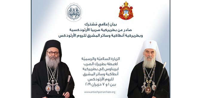 أكدت بطركيتا صربيا الأرثوذكسية وأنطاكية وسائر المشرق للروم الأرثوذكس أن السلام في منطقة الشرق الأوسط لا يمكن أن يرتكز إلا على تضافر جميع الجهود ضمن مبدأ المواطنة والعيش المشترك بين كل الأطياف.