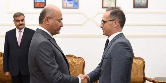 ونقل المكتب الإعلامي لرئاسة الجمهورية العراقية عن صالح قوله خلال لقاء وزير الخارجية الألماني هايكو ماس: “سنستمر في توحيد الجهود الرامية إلى اعتماد لغة الحوار البناء والابتعاد عن منطق التدخل بشؤون الدول” مشيرا إلى أن “تأسيس النظام الاقليمي المستقر وتعزيز التكامل الدولي الإيجابي والاعتراف بالمصالح المتبادلة هو السبيل لإبعاد البلاد والمنطقة عن شبح الصراعات”.