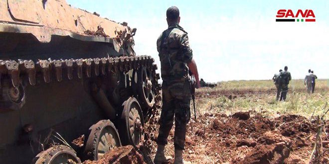 وفي ريف حماة الشمالي ردت وحدات الجيش على هجمات المجموعات الإرهابية التابعة لتنظيم جبهة النصرة وخروقاتها لاتفاقات منطقة خفض التصعيد.