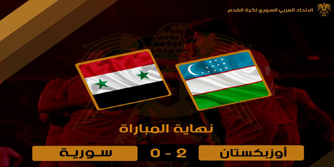 خسر منتخب سورية للرجال بكرة القدم أمام نظيره الأوزبكي بهدفين دون رد في المباراة الودية التي جرت اليوم في العاصمة الأوزبكية طشقند في إطار استعداداته للتصفيات المشتركة لكأس العالم 2022 في قطر ونهائيات أمم آسيا 2023 في الصين.