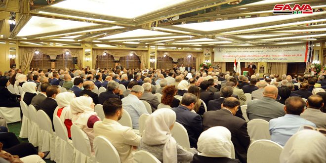 حضر افتتاح المؤتمر عضو القيادة المركزية لحزب البعث العربي الاشتراكي رئيس مكتب المنظمات الشعبية والنقابات المهنية هدى الحمصي.