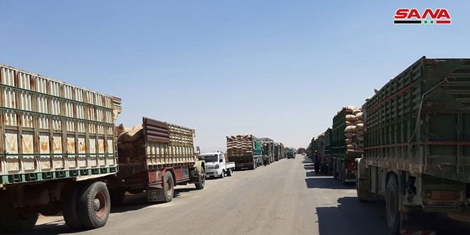 اشترت المؤسسة السورية للحبوب من الفلاحين والمنتجين منذ بداية الموسم حتى صباح اليوم نحو 135 ألف طن قمح سيتم تفريغها بشحنها إلى المحافظات حسب الحاجة.