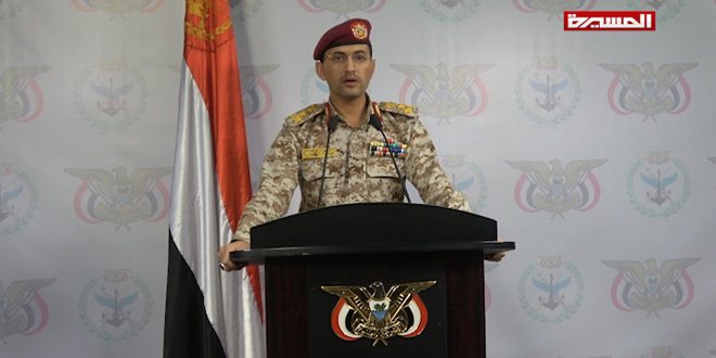 وجدد التأكيد على أن المطارات والمواقع العسكرية لدول العدوان أصبحت غير آمنة وأن عمليات الجيش واللجان الشعبية في تصاعد مستمر طالما استمر العدوان والحصار المفروض على اليمن كما جدد دعوة شركات الطيران والمدنيين للابتعاد عن المطارات والمواقع العسكرية كونها أصبحت أهدافاً مشروعة.