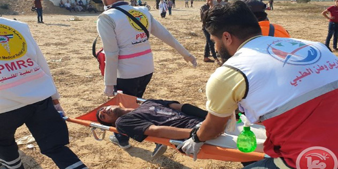 أصيب عدد من الفلسطينيين بجروح والعشرات بحالات اختناق اليوم جراء اعتداء قوات الاحتلال الإسرائيلي على المشاركين في الجمعة الحادية والستين من مسيرات العودة وكسر الحصار تحت عنوان “لا لضم الضفة” في قطاع غزة.
