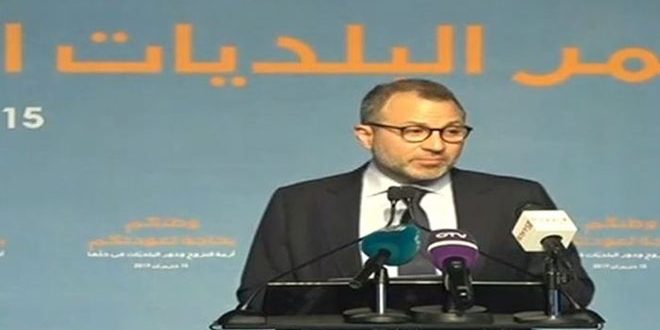 وكان باسيل أكد في تصريح له الشهر الماضي دعم لبنان الحل السياسي للأزمة في سورية بما يرتضيه السوريون ويساعد في تسريع عودة المهجرين جراء الإرهاب إلى بلادهم.