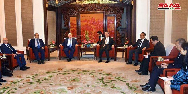 وأشار وزير الخارجية والمغتربين في بداية اللقاء إلى أن الجمهورية العربية السورية ترغب في تطوير علاقاتها مع جمهورية الصين الشعبية في كل المجالات بما في ذلك المجال الاقتصادي للوصول بها إلى مستوى العلاقات الاستراتيجية التي تعد ترجمة فعلية لرؤية السيد الرئيس بشار الأسد المتمثلة في التوجه شرقا في علاقات سورية.