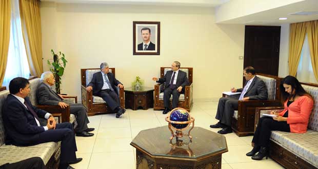 من جهة ثانية شرح المقداد للوفد الفلسطيني نتائج زيارة مبعوث الأمين العام للأمم المتحدة إلى سورية ستافان دي ميستورا واستعداد سورية للتجاوب مع جهوده.