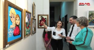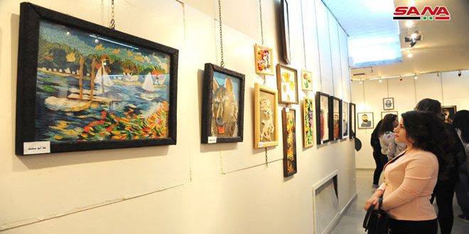 دمشق-سانا طغى الإحساس الأنثوي على أعمال معرض فن الوريقات في صالة المعارض بالمركز الثقافي في …