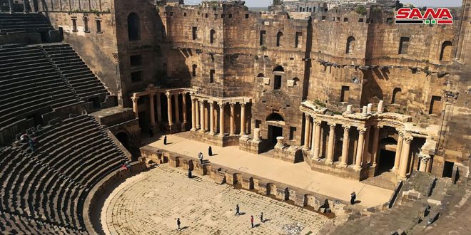 وشهدت مدينة بصرى الشام منذ عودة الأمن والاستقرار إليها عدة زيارات لوفود سياحية وأقيم على مسرحها حفل فني جسد تراث حوران.