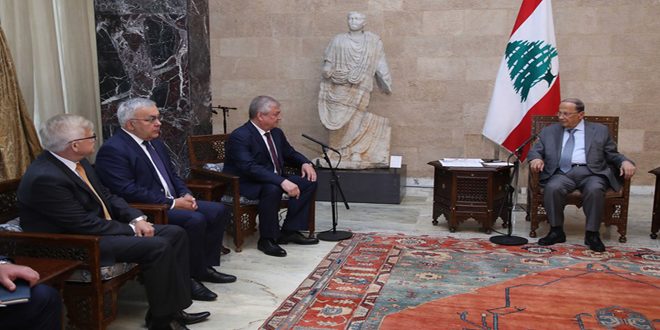 بحث الرئيس اللبناني العماد ميشال عون اليوم مع المبعوث الخاص للرئيس الروسي إلى سورية ألكسندر لافرنتييف ونائب وزير الخارجية سيرغي فيرشينين التطورات الراهنة في لبنان والمنطقة وموضوع المهجرين السوريين.